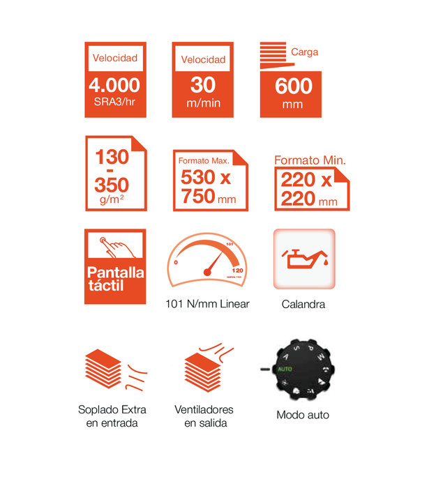Fácil de usar: Pantalla táctil, navegación intuitiva, botón de inicio en automático, carga rápida de film, sistemas de supervisión de seguridad, regulación de temperatura en automático, precisión milimétrica en todos los dispositivos de ajuste.